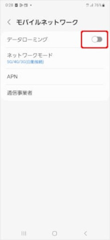 [データローミング]のスイッチをタップしてオフにします。