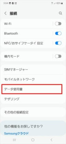 [データ使用量]をタップして1つ前の画面に戻ります。