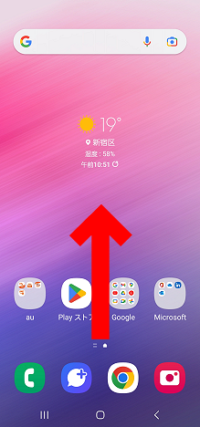 ホーム画面を下から上へスライドし、アプリ一覧を表示します。