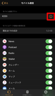 モバイル通信プランの[i]をタップします。