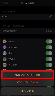 [KDDIアカウントを管理]をタップします。