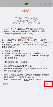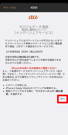 ※1台のApple Watchでナンバーシェアとウォッチナンバーを契約している場合は、現在ペアリング中のサービスの契約画面が表示されます。