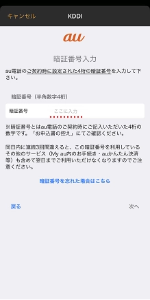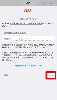 暗証番号を入力し、[次へ]をタップします。