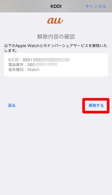 解除内容をご確認いただき、[解除する]をタップします。