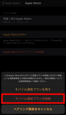 [モバイル通信プランを削除]をタップします。