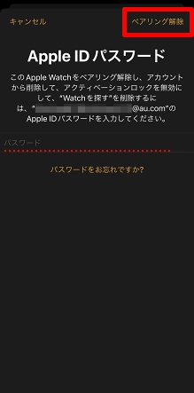 Apple IDのパスワードを入力し、[ペアリング解除]をタップします。