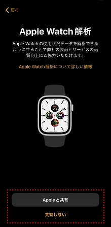Apple Watchの使用状況データをAppleと共有することを許可するかどうかを選択します。