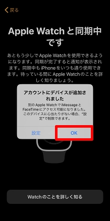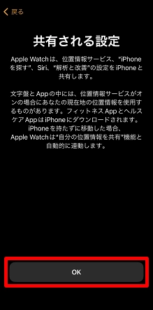 Apple WatchでiPhoneと共有される設定が表示されるので[OK]をタップします。