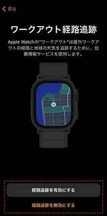 Apple Watchのワークアウト経路追跡を有効にするか無効にするかを選択してタップします。