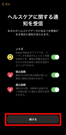 設定が完了したら、[続ける]をタップします。