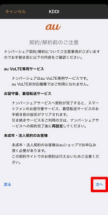 ナンバーシェアについてのご案内をご確認の上、[次へ]をタップします。