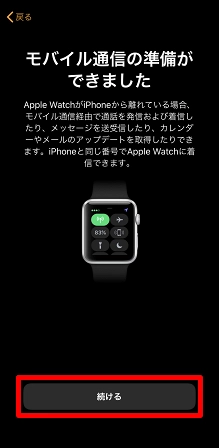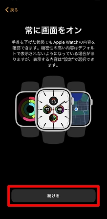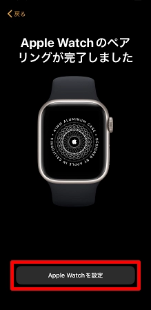 「Apple Watchのペアリングが完了しました」と表示されたら、続いて[Apple Watchを設定]をタップします。