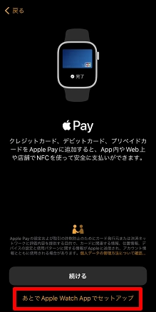 ここでは[あとでApple Watch Appでセットアップ]をタップします。