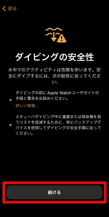 水中で「水深App」を自動的に開くかどうかを選択してタップします。