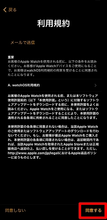 Apple Watchの利用規約をご確認の上、[同意する]をタップします。