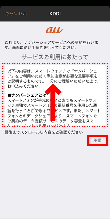 サービスご利用にあたっての説明を最後までお読みいただき、[承諾]をタップします。