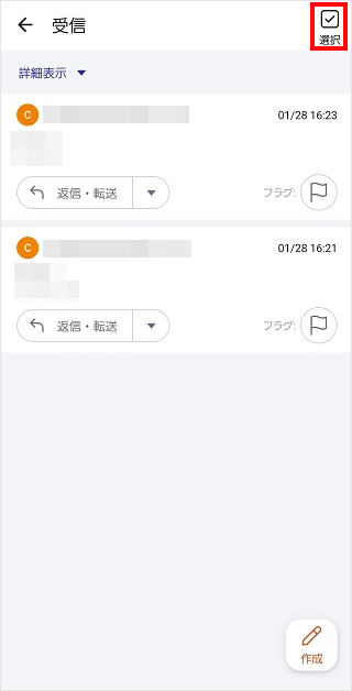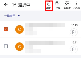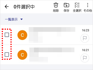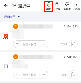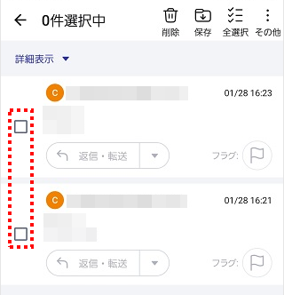 削除したいメールのチェックボックスをタップし、チェックを入れます。