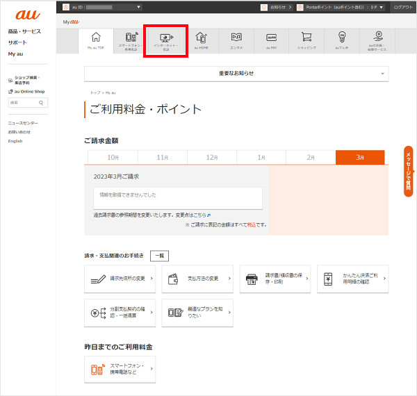 ※au IDを複数お持ちの場合、「auひかり」のご契約が紐づいたau IDを選択の上、ログインしてください。