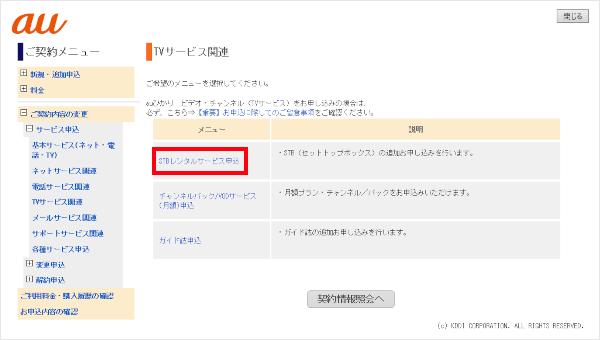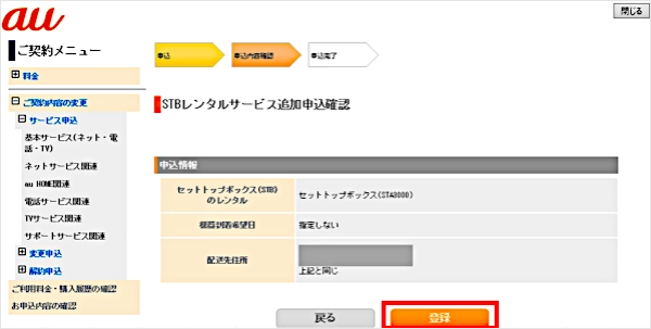 これで、セットトップボックス(STB)レンタルサービス追加のお申し込みは完了です。