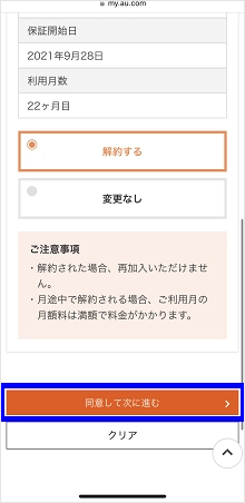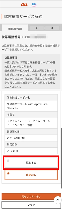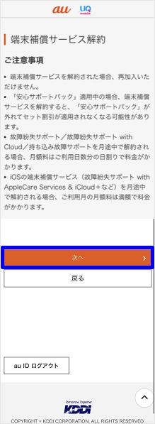 ※auを解約されたお客さまは、[端末補償サービス解約の手続き]をタップします。その後、手順3に進みます。
