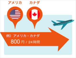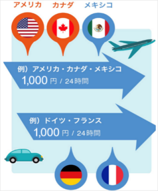利用開始または利用終了する国・地域のどちらかに、周遊先の1,000円/24時間の国・地域を登録の上、予約してください。