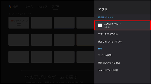 [アプリ]を選択し、リモコンの「決定」ボタンを押します。