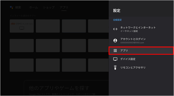 [アプリ]を選択し、リモコンの「決定」ボタンを押します。