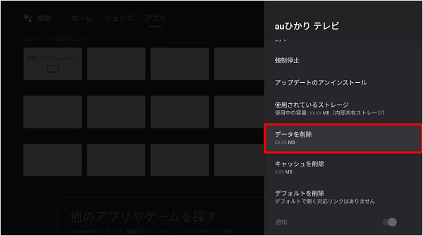 [データを削除]を選択し、リモコンの「決定」ボタンを押します。