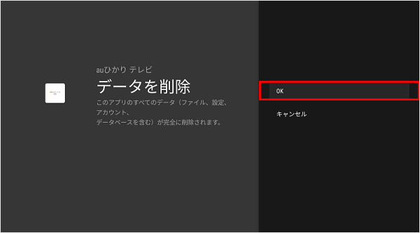 [OK]を選択し、リモコンの「決定」ボタンを押します。