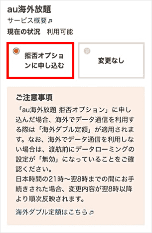 au海外放題のご利用にあたり、ご利用開始から一定期間内(24時間単位)に大量のデータ通信があった場合はデータ送受信速度に制限がかかります。