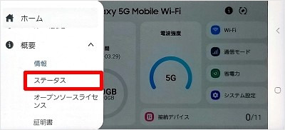 Galaxy 5G Mobile Wi-Fi SCR01の電話番号の確認方法は以下の通りです。