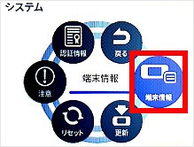 「端末情報」を選択し、[●(電源・決定ボタン)]を押します。