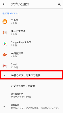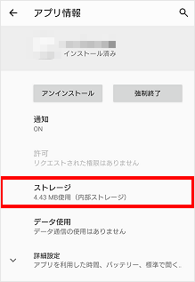 キャッシュを削除したいアプリを選択し、[ストレージ]または[ストレージとキャッシュ]をタップ