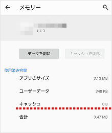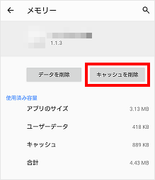 [キャッシュを削除]または[キャッシュを消去]をタップ