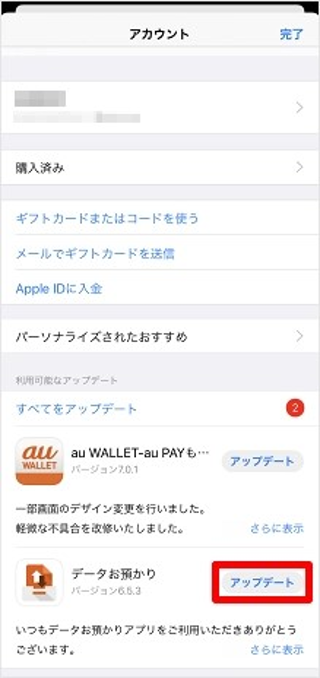 最後に、画面右上の[完了]をタップします。以上でアプリのアップデートの操作は完了です。
