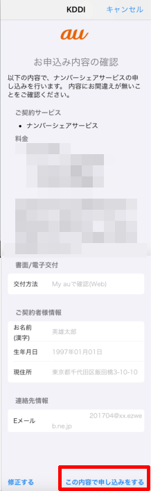 内容を確認し、[この内容で申し込みをする]をタップします。