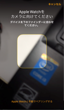 画面の枠内におさまるようにApple WatchをiPhoneのカメラに向けてください。