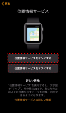 Apple Watchの位置情報サービスをオンにするかオフにするかを選択してタップします。