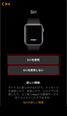 Apple Watchで[Siriを使用]または[Siriを使用しない]のどちらかをタップします。