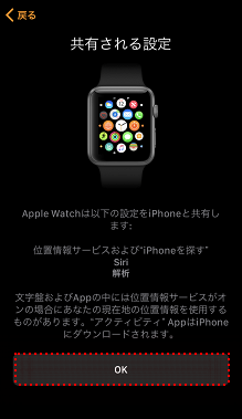 Apple WatchでAppleと共有される設定が表示されるので[OK]をタップします。