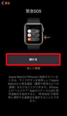 緊急SOSについて、内容をご確認の上[続ける]をタップします。