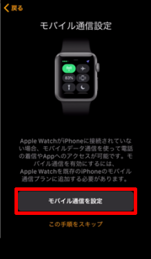 [モバイル通信を設定]をタップし、しばらく待ちます。
