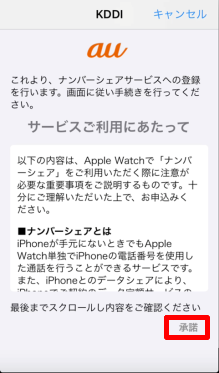 内容を最後までスクロールして確認し、[承諾]をタップします。