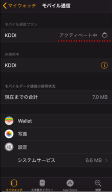 「アクティベート中」の表示が消えたら設定完了です。