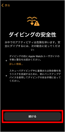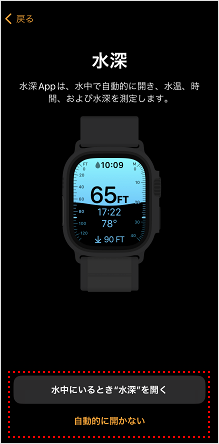 水中で水深Appを自動的に開くかどうかを選択してタップします。