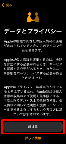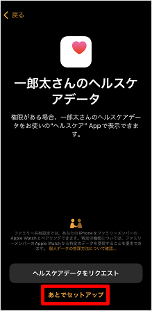 Apple Watchの使用状況データをAppと共有することを許可するかどうかを選択します。