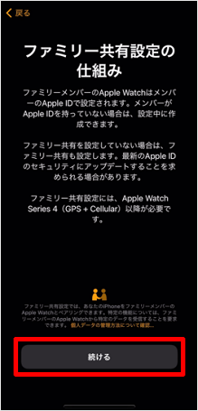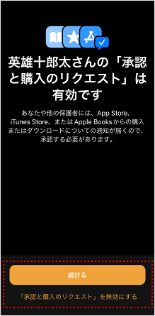 表示されているファミリーメンバーの承認と購入のリクエストを有効にする場合は、[続ける]をタップします。