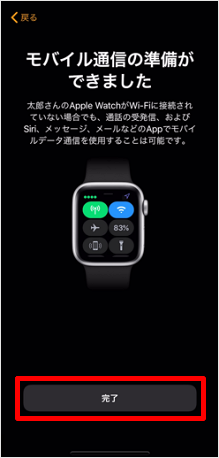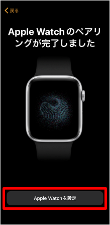 「Apple Watchのペアリングが完了しました」と表示されたら、続いて[Apple Watchを設定]をタップします。