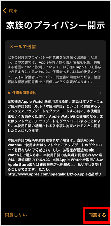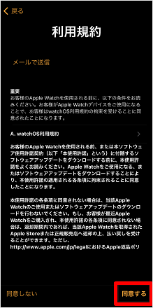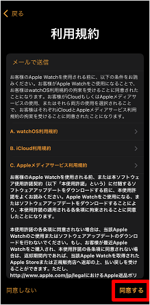 Apple Watchの利用規約をご確認の上、[同意する]をタップします。