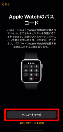 Apple Watchのパスコードを作成します。[パスコードを作成]をタップします。